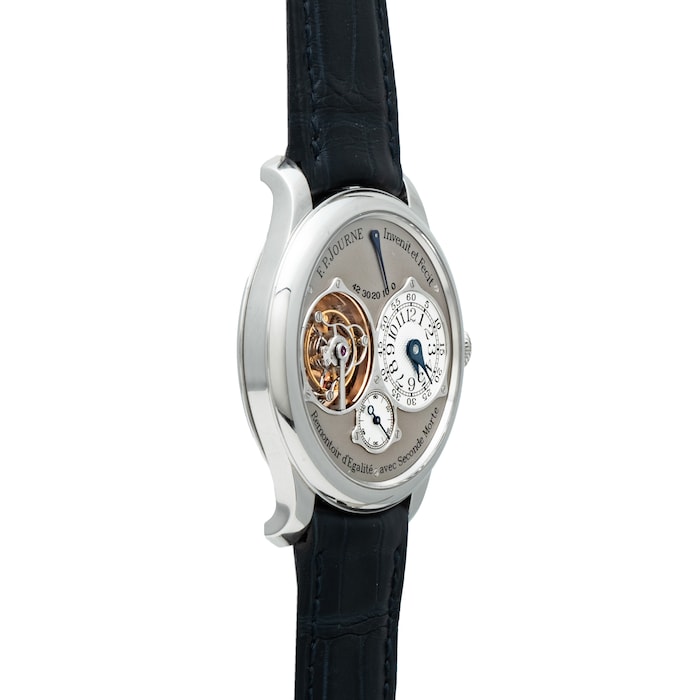 Finished with a signed black alligator leather strap with matching platinum pin buckle, this exquisite piece is without question one of the finest independently-made timepieces we’ve had the pleasure of offering. This watch was evaluated and authenticated by F.P. Journe's NYC boutique prior to listing, and will include certificate of origin from F.P. Journe (on order).